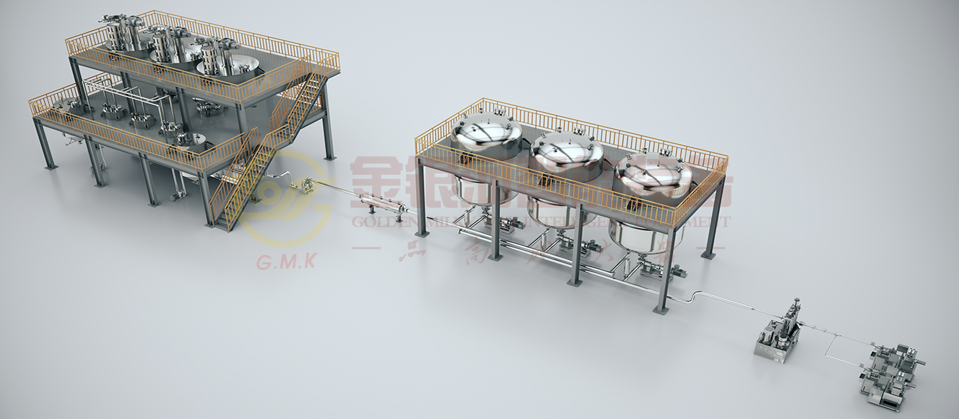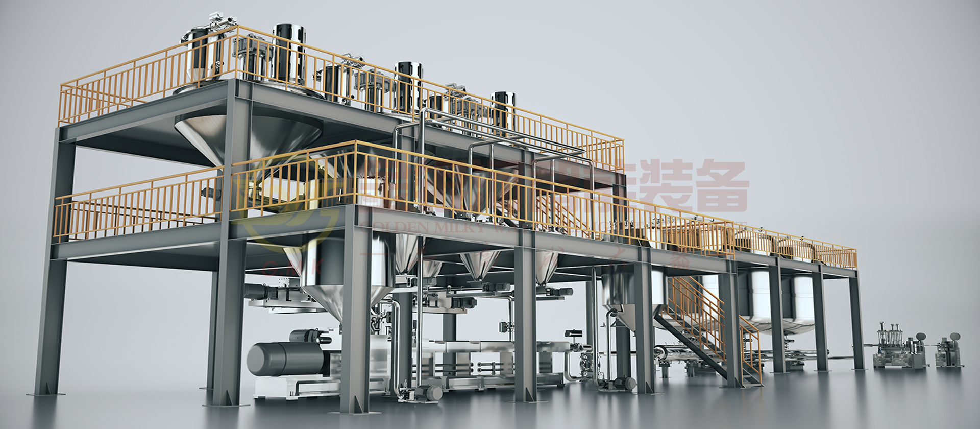 由計(jì)量斗、稱量及輸送系統(tǒng)、貯罐、冷卻器、喂料機(jī)、雙螺桿螺旋混合機(jī)、輔助設(shè)備及DCS中央控制系統(tǒng)組成。原材料(粉體與液體)通過(guò)精確的計(jì)量系統(tǒng)在線自動(dòng)和連續(xù)輸送到螺旋混合機(jī)中,在雙螺桿螺旋混合機(jī)中完成粉液完成混合、分散、研磨、抽真空,并通過(guò)在線加入液料至其中,并輸出進(jìn)入貯罐暫存,后段接靜態(tài)混合機(jī)即可完成雙組分電源灌封膠產(chǎn)品輸出。它的生產(chǎn)效率高,適合大規(guī)模生產(chǎn);它具有自動(dòng)化程度高,杜絕物料直接接觸空氣,產(chǎn)品質(zhì)量穩(wěn)定性好,物料及能源損耗少等優(yōu)點(diǎn)。